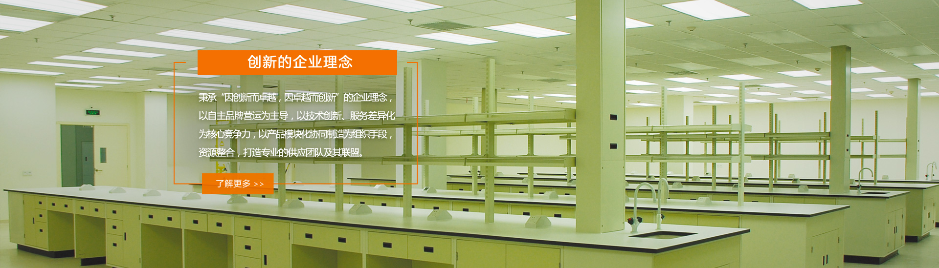 公司實(shí)施核心多元(yuán)化戰略,依(yī)托於實驗室特種櫥櫃的強大研發能力和(hé)技術背(bèi)景,進一(yī)步開發(fā)了實驗室配套產品及市場,集研發(fā)、設計、製造、銷售、施工為一體,提供包含實(shí)驗室顧問谘詢、實(shí)驗室規劃設計、實(shí)驗室家具工程、實驗室台麵、實驗室儀器耗材、實驗室裝修工程、實驗室通風係統、實驗室供氣係統、實驗室潔(jié)淨係統、實驗室環保係統的一(yī)體化全程服務(wù)及產品。