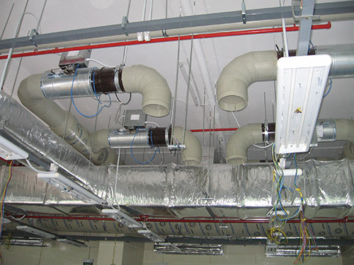 5) 實驗室風管在選擇防(fáng)腐蝕較好,硬度高的(de)材質。本工程涉及(jí)到所有風管均可采(cǎi)用防腐蝕(shí)性能好的(de)PVC/UPVC材質,風機全部為腐蝕性能好的(de)玻璃鋼風機。