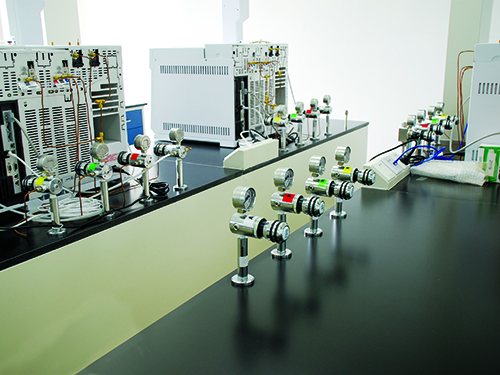 實驗室常用氣體(tǐ)主要(yào)有非燃氣體(氮氣、二氧化碳(tàn))、惰性氣體(氬(yà)氣、氦(hài)氣等)、易燃氣體(氫氣、一氧化碳);劇毒氣體(氟氣、氯氣);助燃氣體(氧氣)組成。一般氣相室(shì)配置氦氣(He)、氮氣(N2)。氣質聯用配置了氮(dàn)氣、氫氣、氧氣,氫氣管線上的連接管件都(dōu)要連接後焊接,嚴禁有泄漏的可能,所有的管線在(zài)安裝完畢後一定(dìng)要做氣密性實驗,並在使用前要先除油,由於管(guǎn)道細小,管間距小,安裝過程中可依據現場情況進行調整,保證間距不小(xiǎo)於45mm,氣瓶裝瓶(píng)時,易燃易爆與惰(duò)性氣體同櫃,杜絕(jué)兩種(zhǒng)易燃氣體鋼瓶裝同一氣瓶櫃。