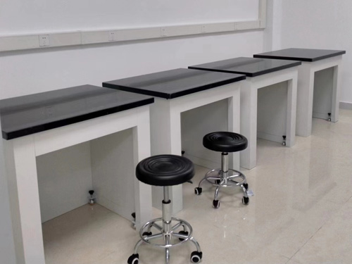 1.材 料(liào):采用加厚大理石台麵40mm,內置鋼製(zhì)框架支持。大理石放射性能滿足國家標準對室內裝飾的要求,大理石台麵下襯(chèn)雙重精密水平調節螺杆及防振墊,整體要求牢固、光滑美觀、防震良(liáng)好。